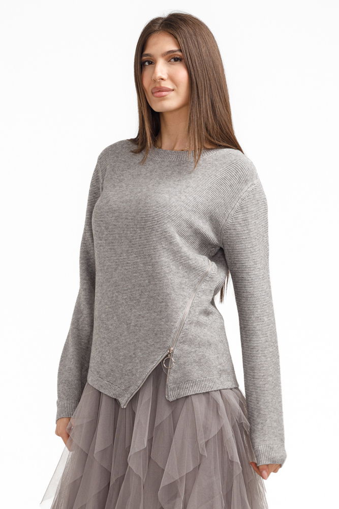 • Puloverul are maneci lungi si fermoar oblic metalic argintiu