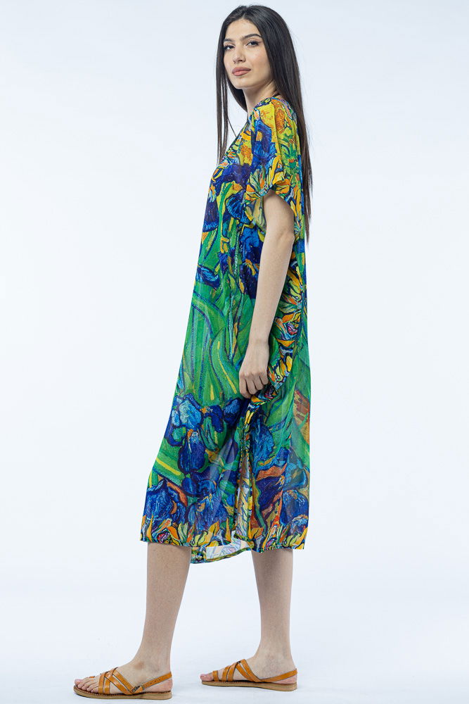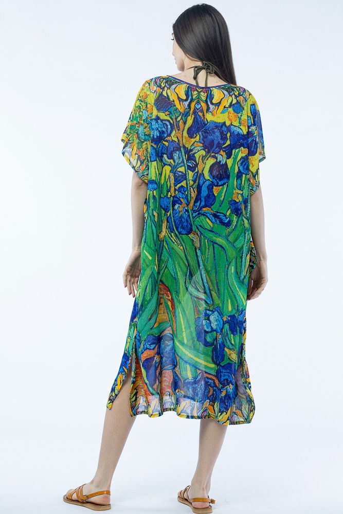Shopika Rochie lunga de plaja tip poncho cu imprimeu dupa " Irisi'' - de Van Gogh