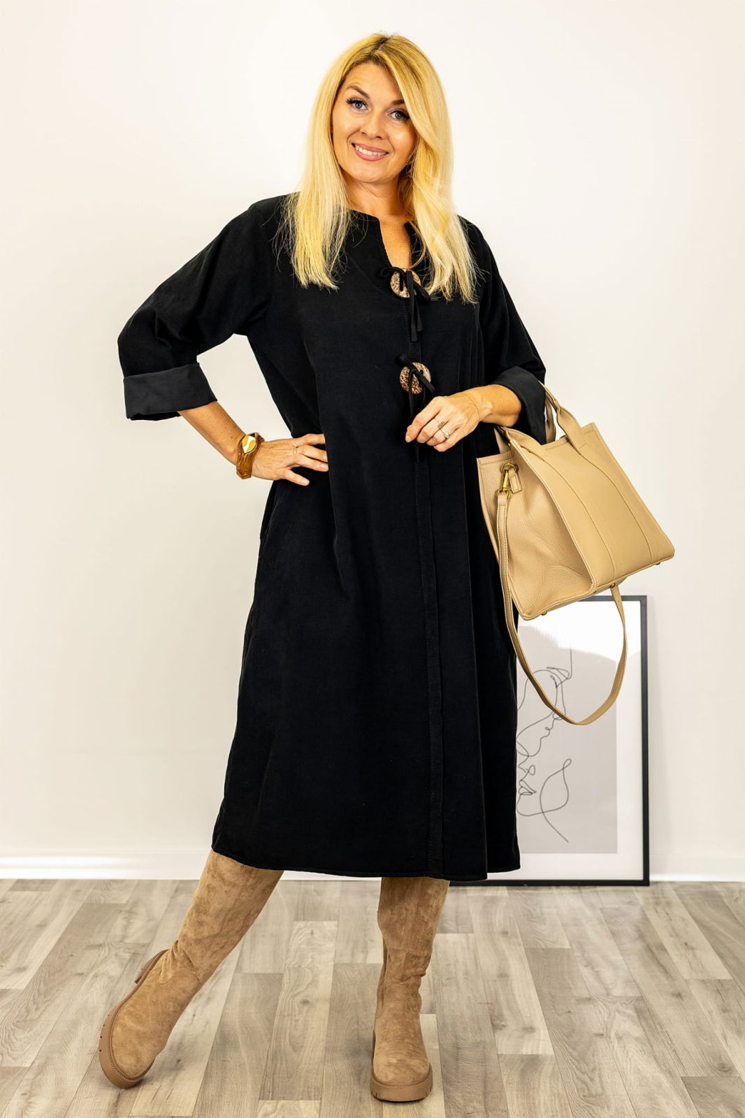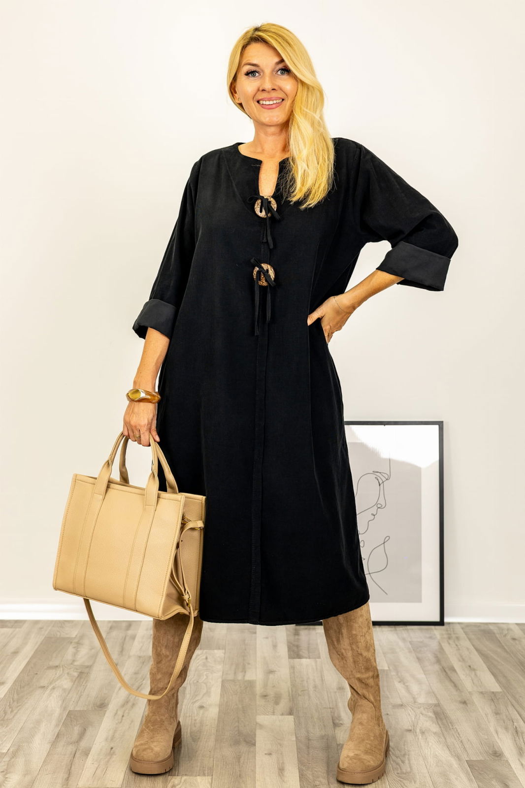 Îmi place mult. O port în ultimele luni de sarcină, dar mi se pare foarte potrivită și după naștere, mai ales dacă îi pui o curea în talie.