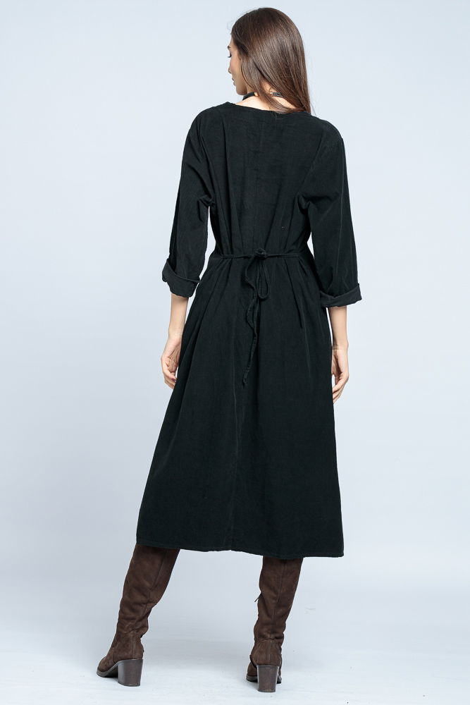 Rochia din catifea reiata poate fi baza unor tinute elegante sau casual. Este foarte versatila si poate fi purtata cu pantofi eleganti si sacou sau intr-o tinuta casual de efect.