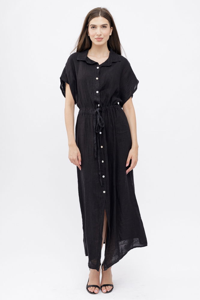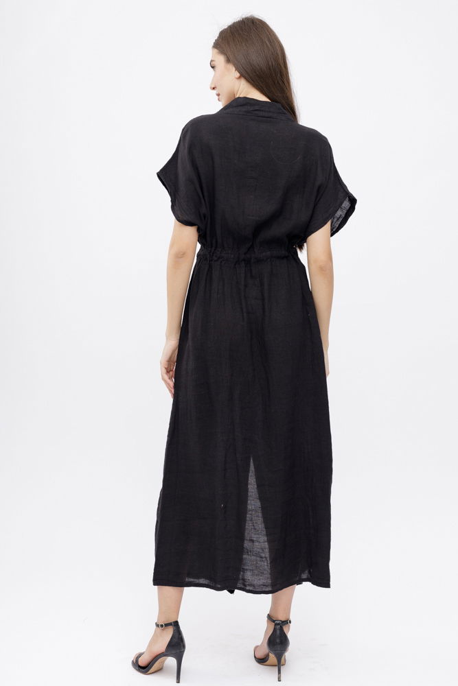 Shopika Rochie camasa, din in, cu snur in talie, neagra