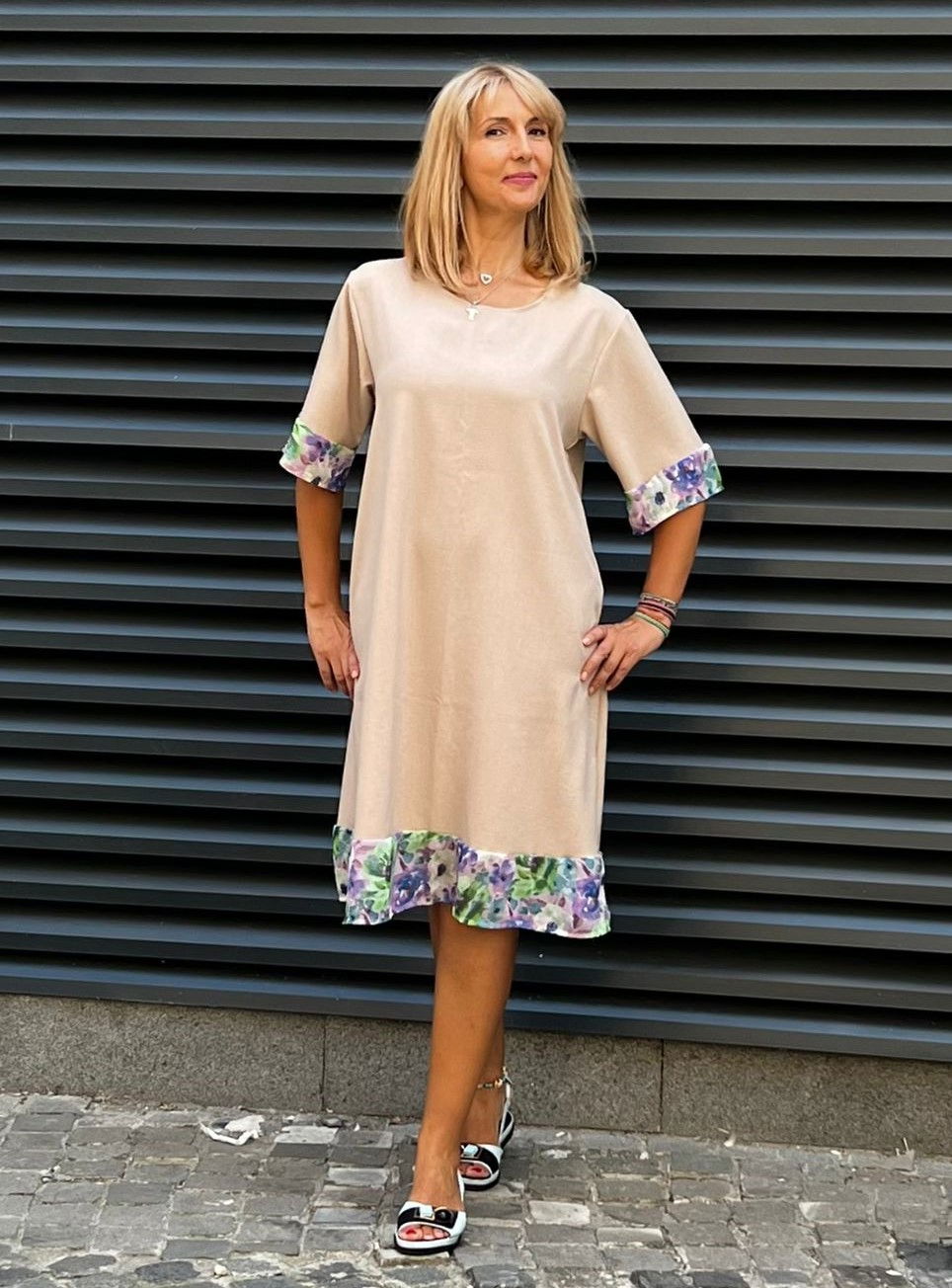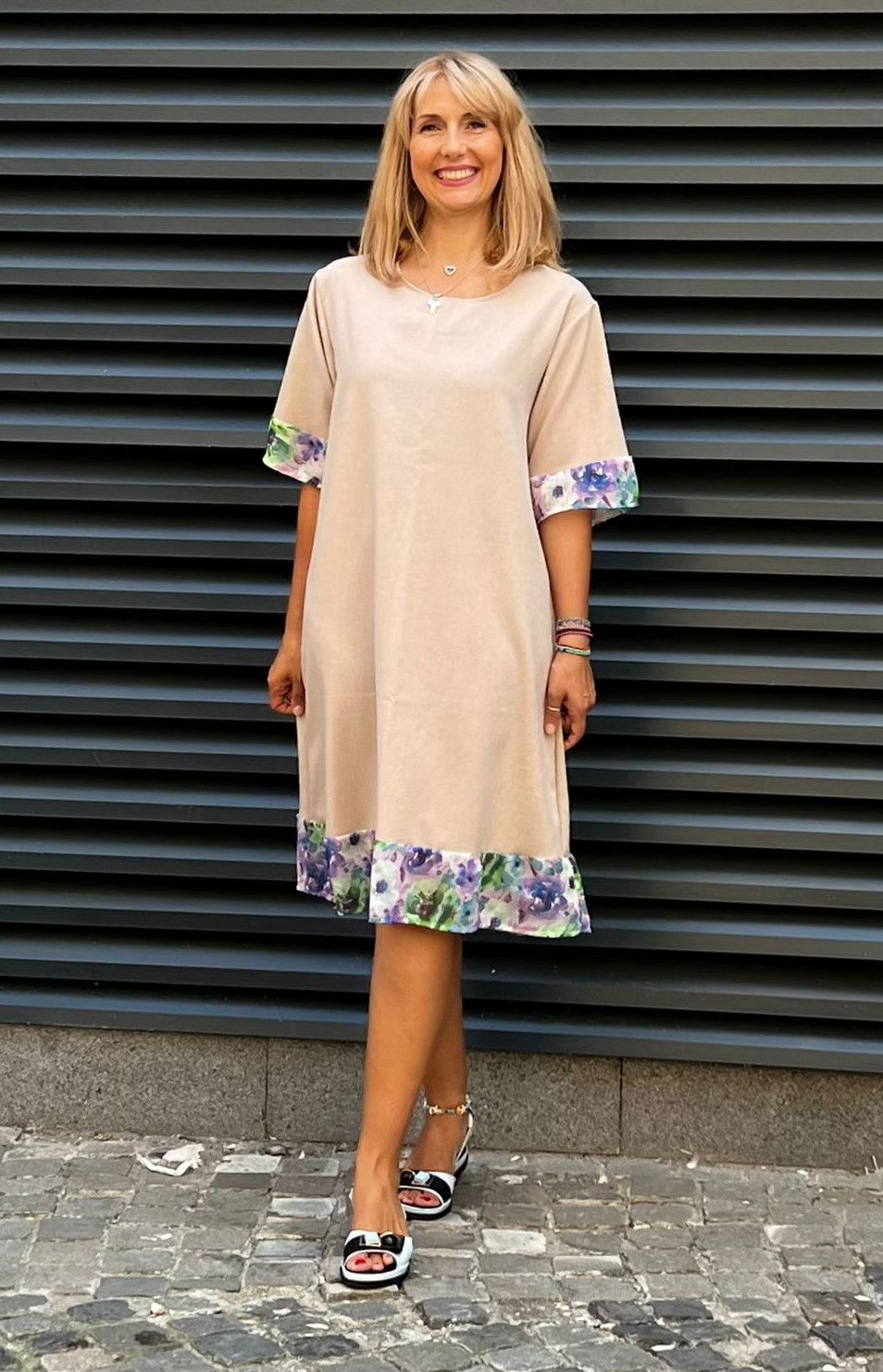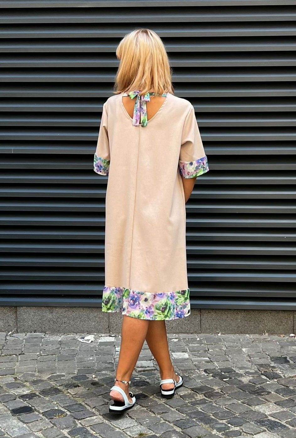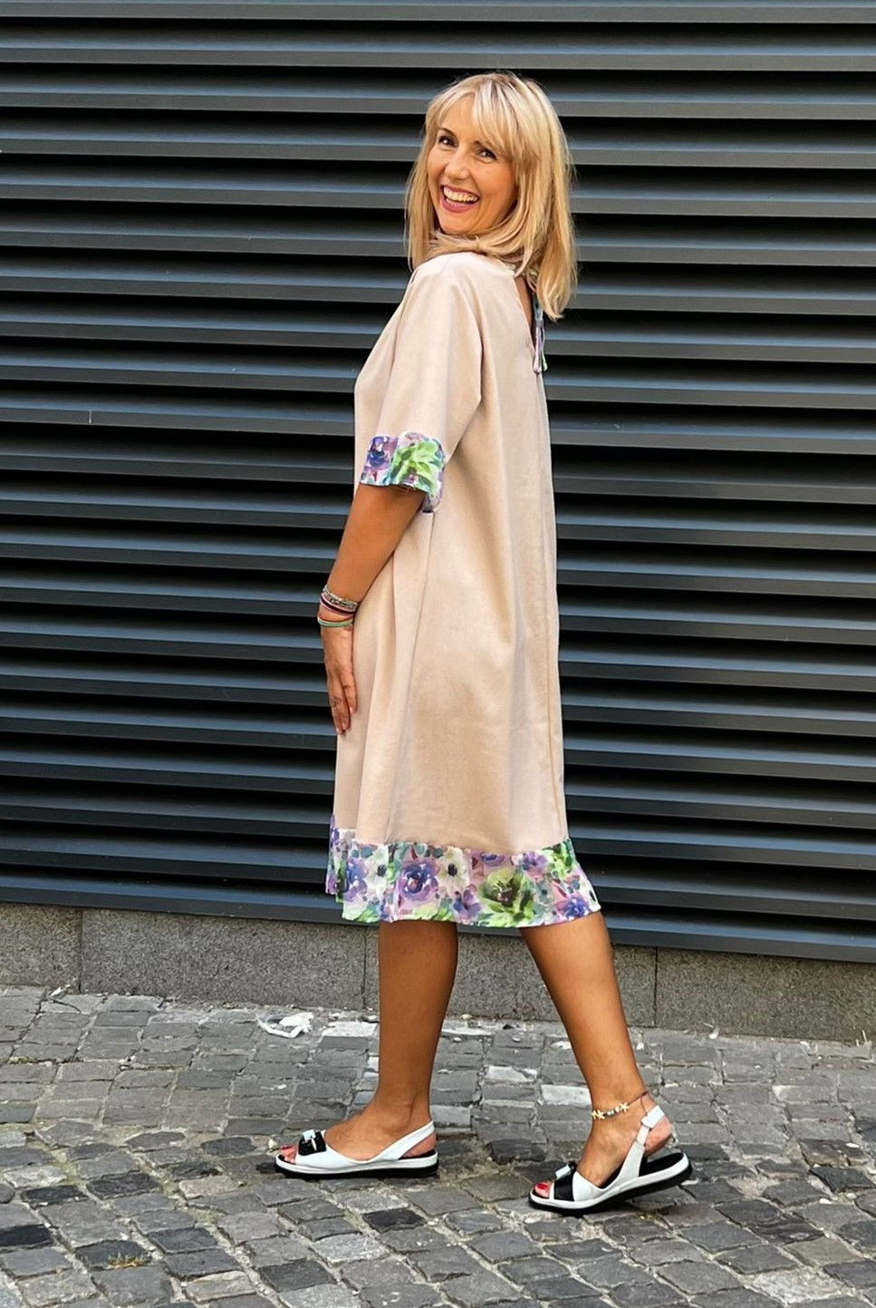 Pierino Rochie din in mercerizat cu volanas imprimat si funda spate, bej