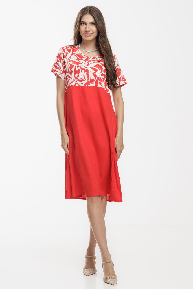 Rochie de vara realizata din in mercerizat, un material cu textura neteda, croita lejer pentru confort si miscare. Croiala feminina, cu maneci scurte si decolteu rotund, potrivita pentru tinute casual chic, zile calduroase sau vacante. Materialul din in mercerizat asigura respirabilitate si un plus de eleganta naturala. Rochia de tip `A line` este foarte apreciata deoarece avantajeaza orice silueta si este foarte comoda si confortabila.