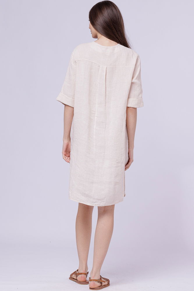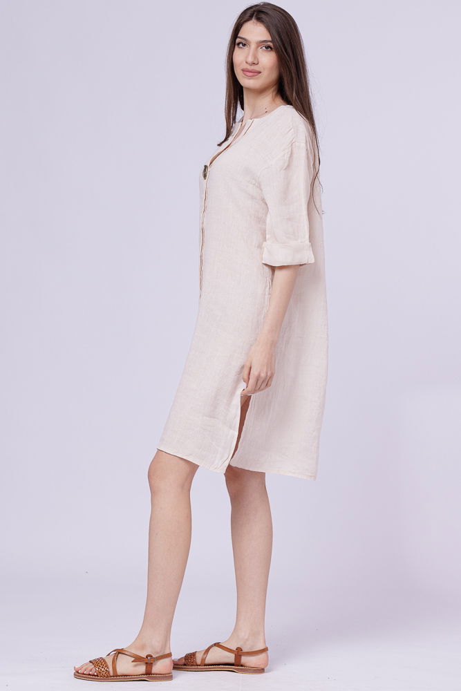 Shopika Rochie tunica din in bej, cu nasture metalic decorativ