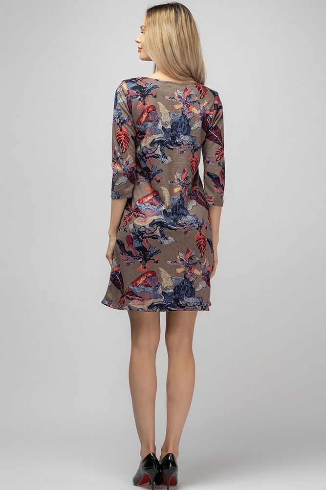 Pierino Rochie dreapta, fundal maro si imprimeu frunze, din vascoza