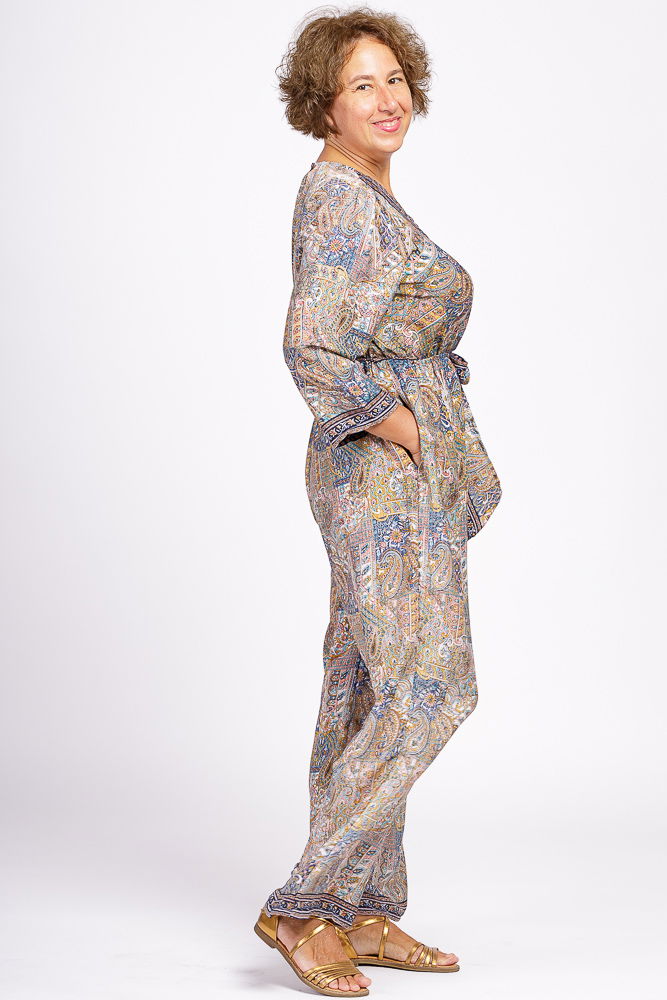 Salopeta din matase ofera lejeritate si comoditate in miscare. Este potrivita pentru a fi purtatia in tinute elegante pentru diverse evenimente sau tinute casual de efect in oras sau pe malul marii.