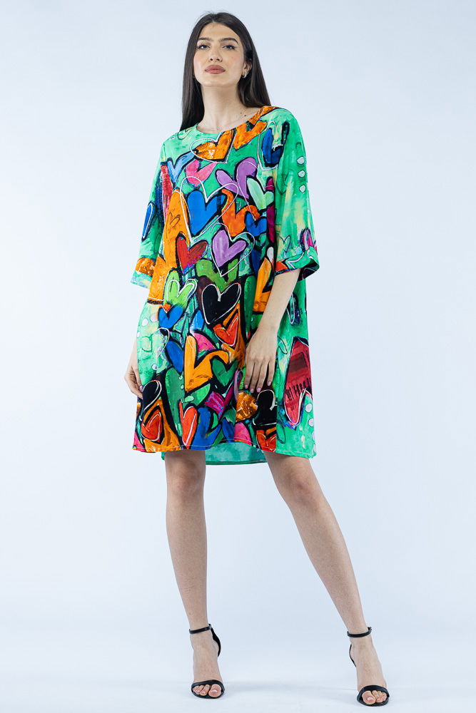 Shopika Rochie midi A-line din vascoza cu imprimeu inimi pe fond verde
