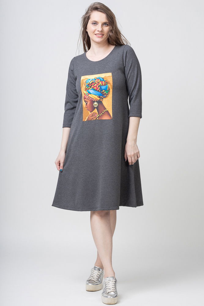 Pierino Rochie `A line` gri din jerseu, cu panou "Fata Africana"