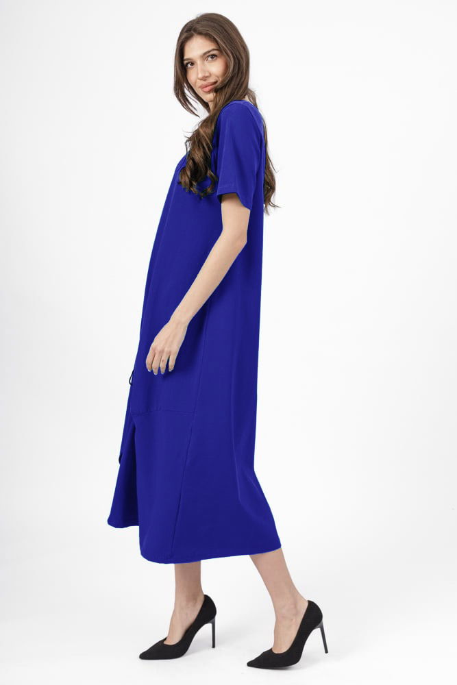 Pierino Rochie lunga A-line albastra, din tricot de bumbac cu siret la poale