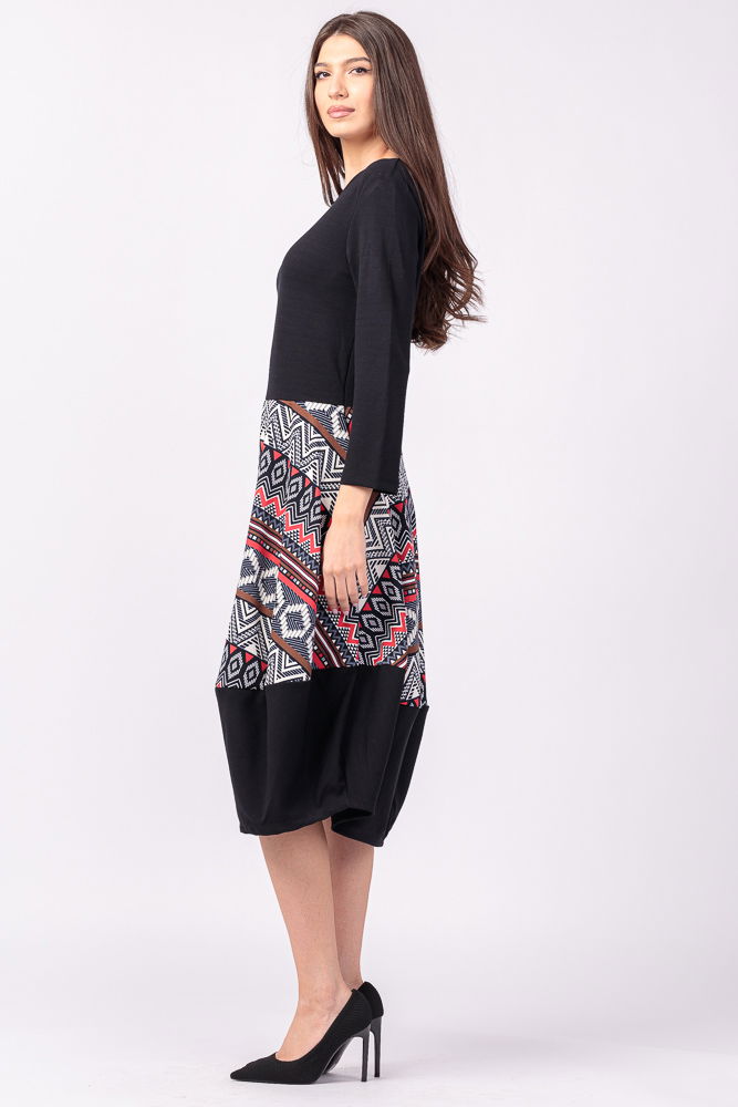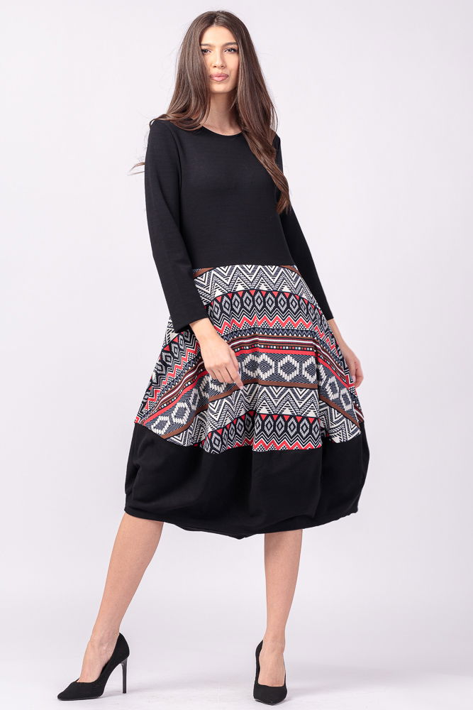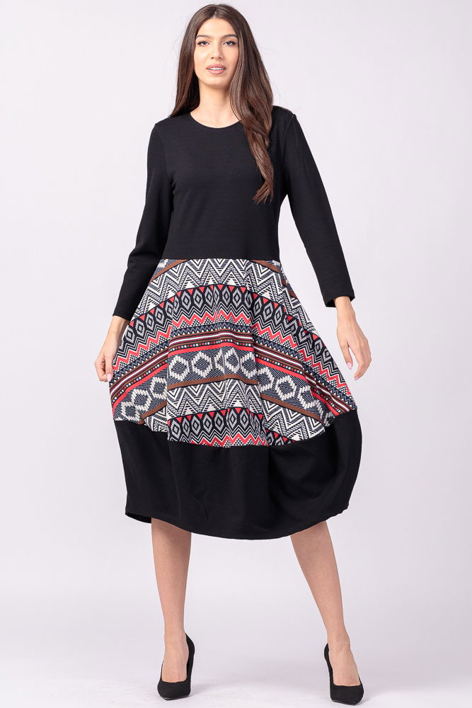 Pierino Rochie neagra, lalea, din jerseu, cu imprimeu geometric cu rosu