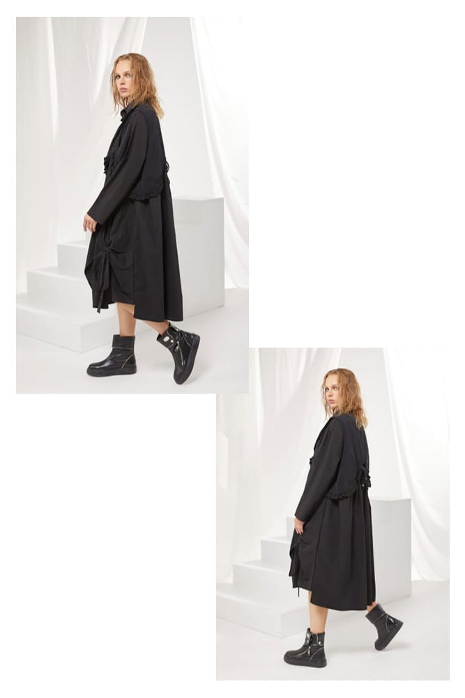 H-4 Set rochie neagra oversize cu guler tip camasa si vesta cu volanas
