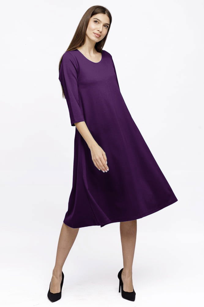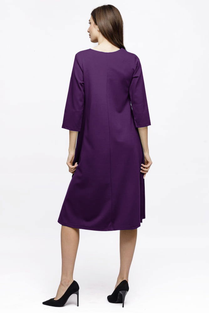 Rochie Eva midi mov A line din tricot de vascoza si decolteu rotund