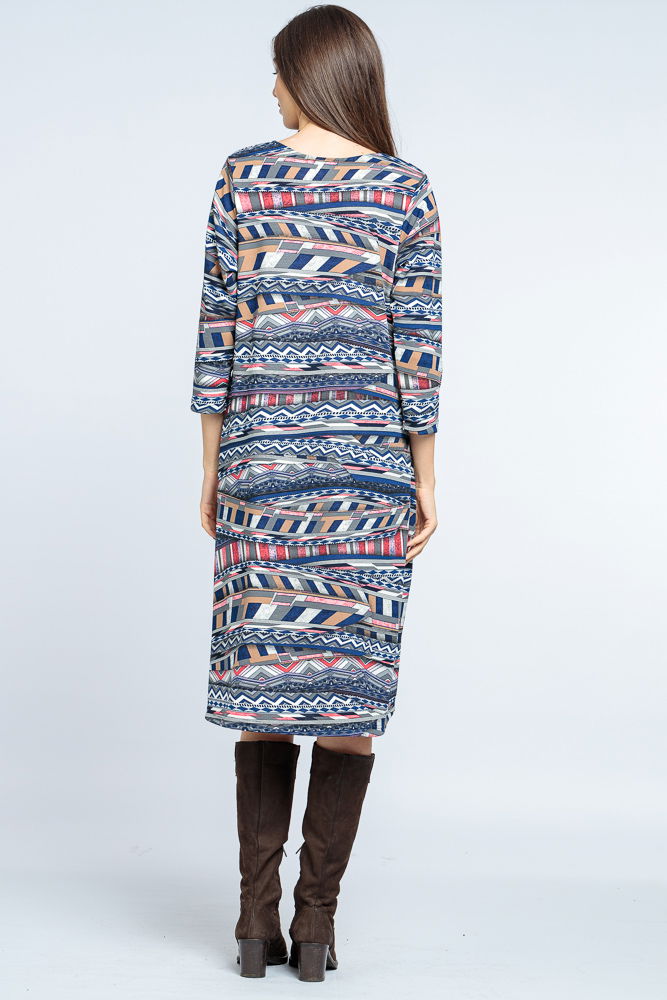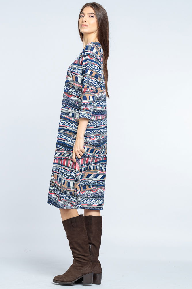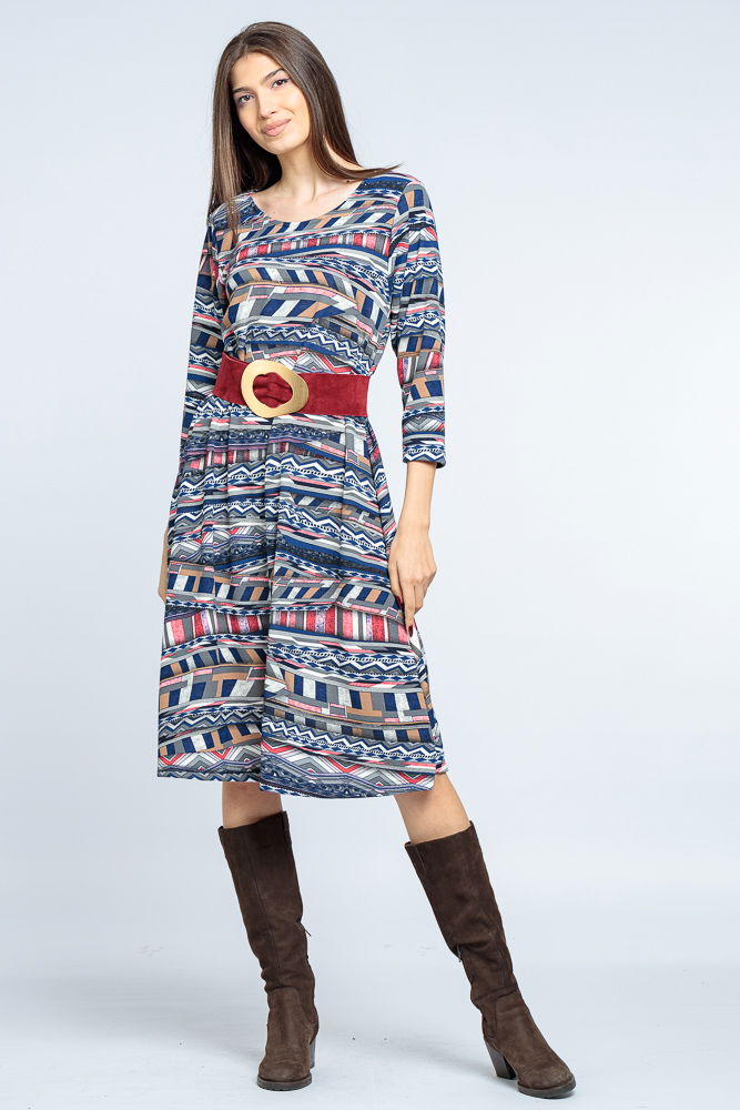 Pierino Rochie `A line` midi, imprimeu geometric liniar albastru-rosu