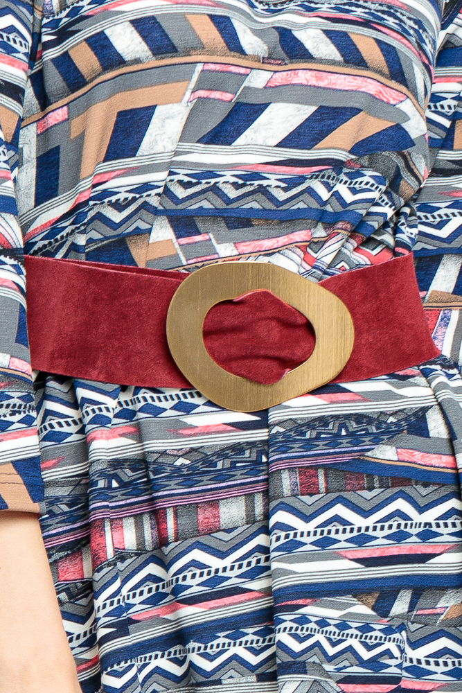 Imprimeul rochiei este deosebit, intr-o combinatie de culori care alaturate creeaza o armonie ce ofera o stare de bine persoanei ce o poarta.