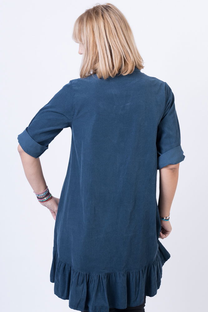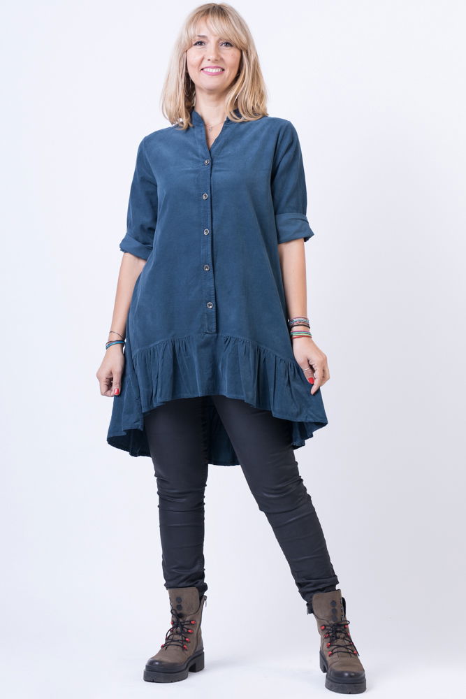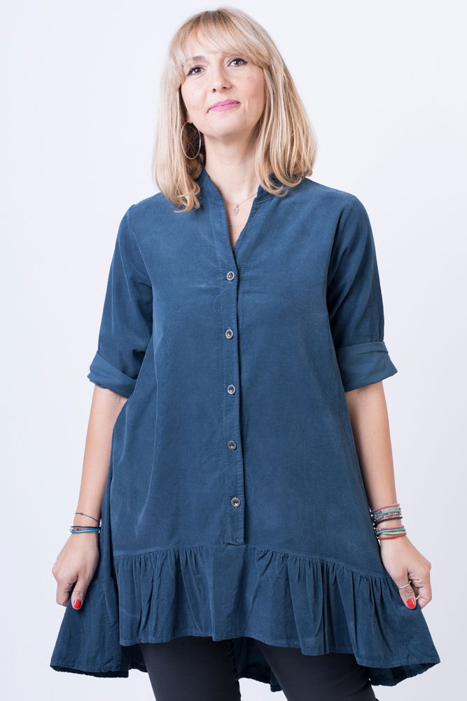 Shopika Rochie pentru colanti cu volan, din catifea reiata, turcoaz inchis