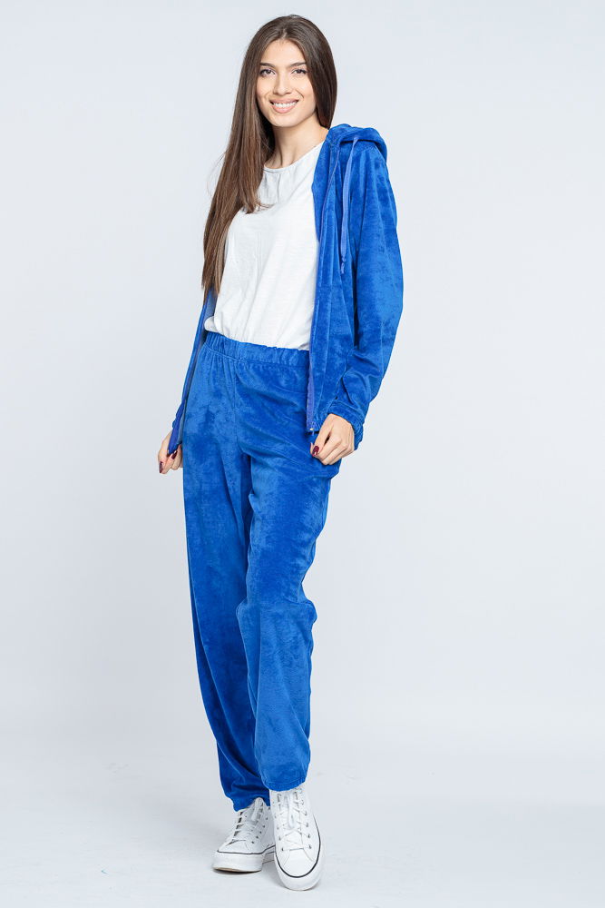 L: bluza: umeri 43 cm, bust 108 cm, lungime 65 cm, pantaloni: talie 82 cm, sold 114 cm, lungime 102 cm