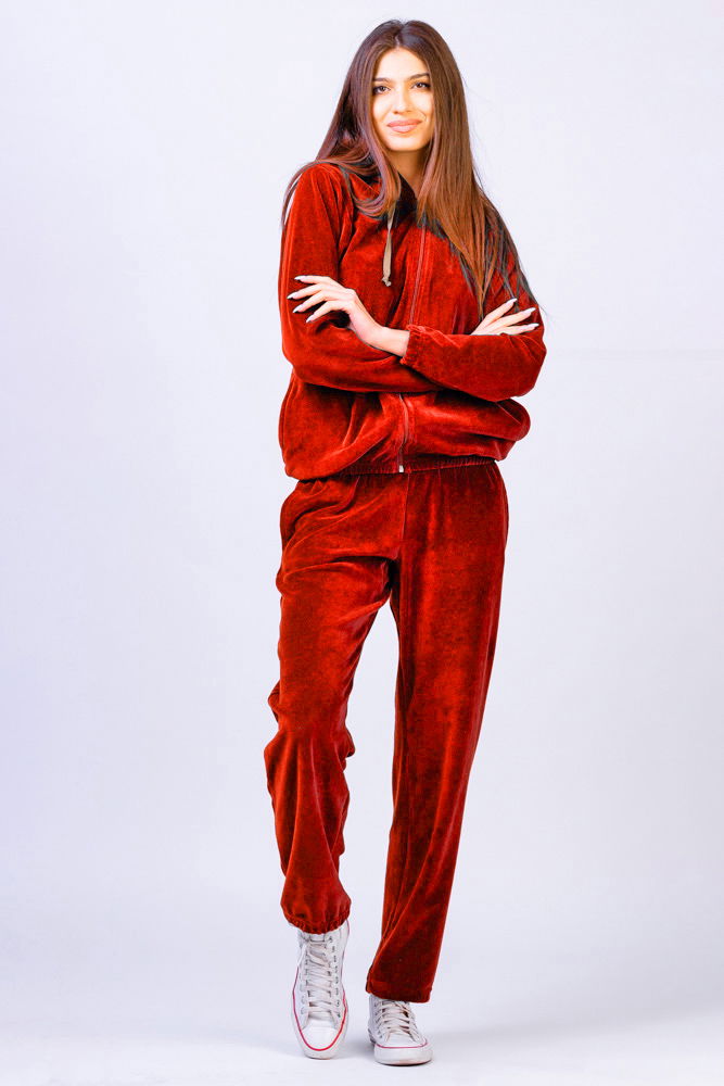 Pierino Trening dama doua piese din catifea de bumbac rosu coca-cola