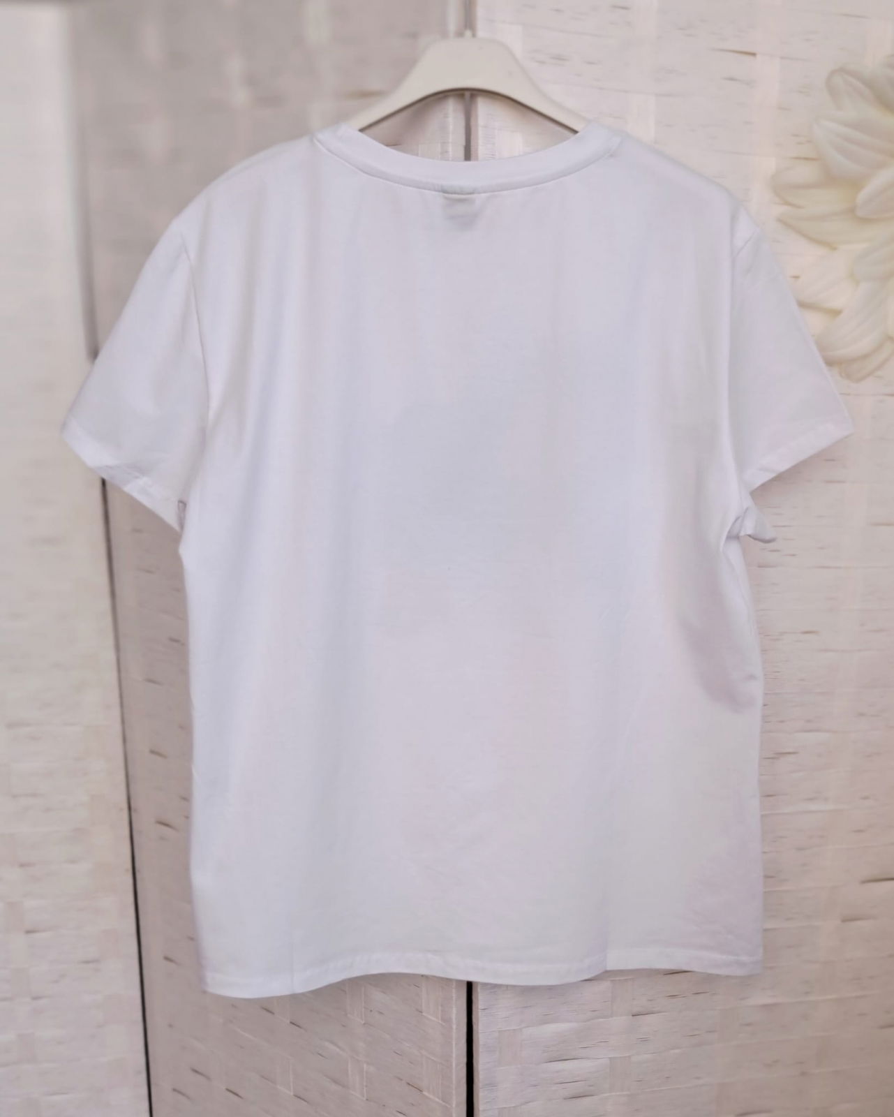 Tricou alb confecționat din bumbac moale, ideal pentru un plus de confort și lejeritate. Modelul este decorat cu un imprimeu simpatic care adaugă un aer jucăuș și original. Croiala este adaptată pentru mărimi mari, oferind libertate de mișcare și o potrivire relaxată. Perfect pentru ținute casual, acest tricou aduce un strop de veselie în garderoba de zi cu zi.