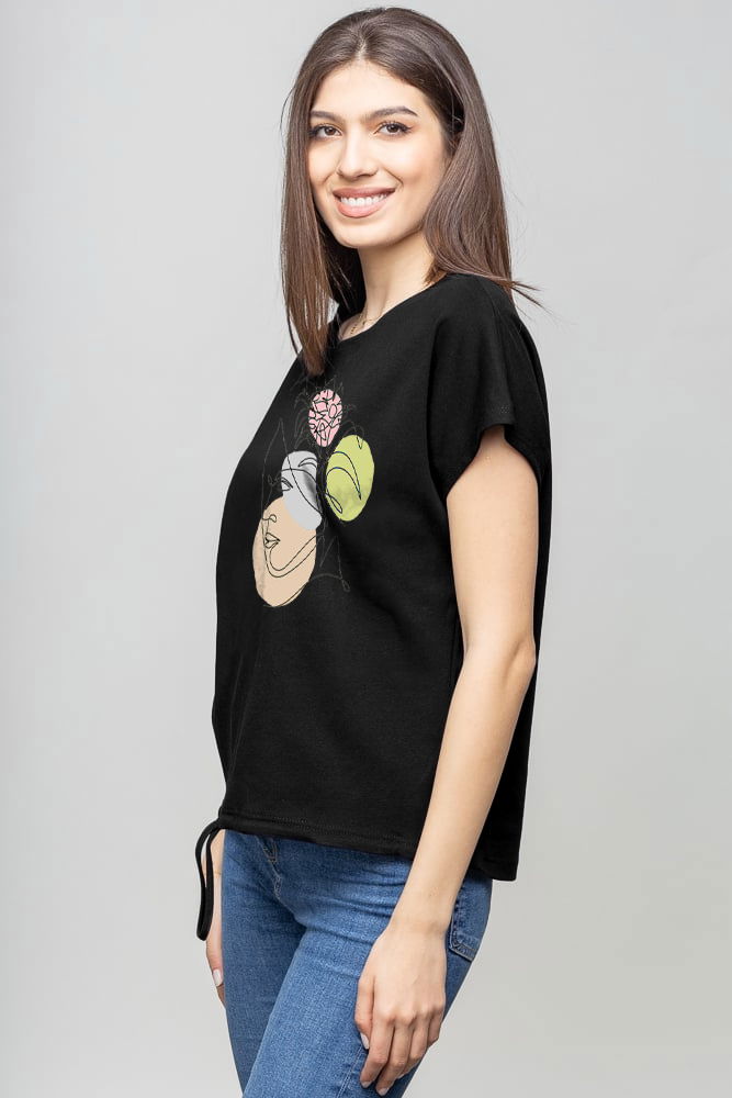 Pierino Tricou cu maneca cazuta din bumbac negru cu snur la baza