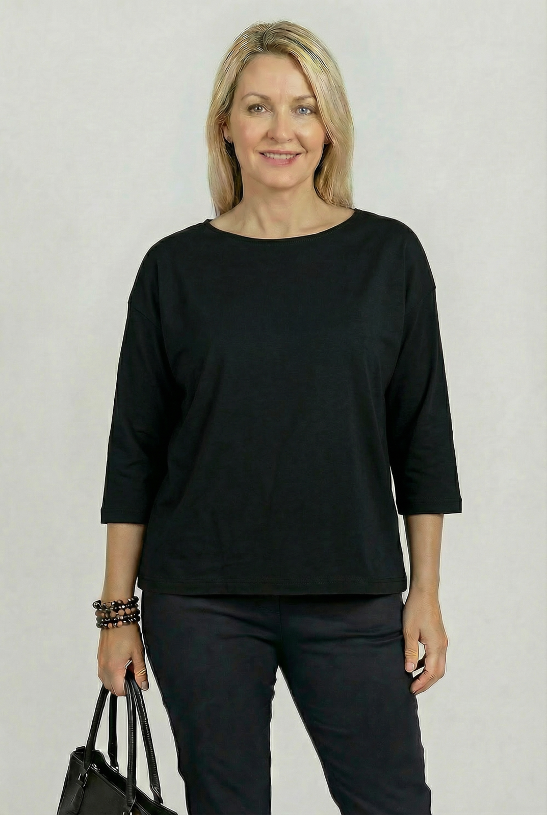 Pierino Tricou uni cu maneca 3/4 din tricot de bumbac, negru