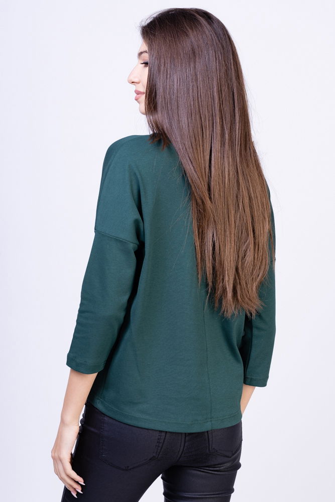 Bluza cu maneci 3/4 si umeri cazuti este un obiect vestimentar care poate fi asortat cu usurinta in diverse tinute.