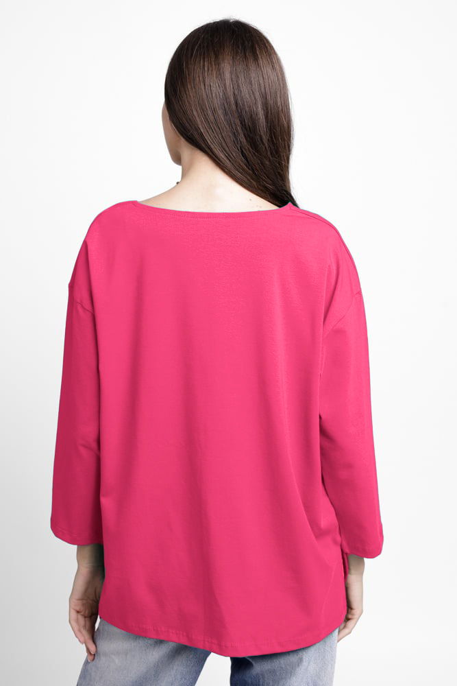 Pierino Bluza larga, dreapta, cu despicaturi laterale, din tricot de bumbac, fucsia
