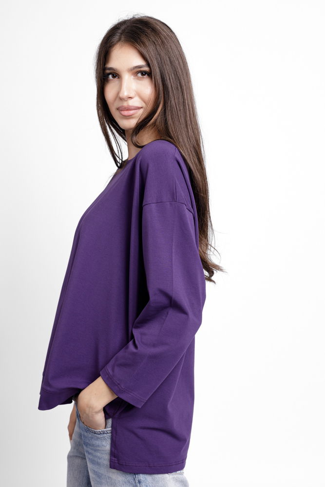 Bluza larga, dreapta, cu despicaturi laterale, din tricot de bumbac, mov