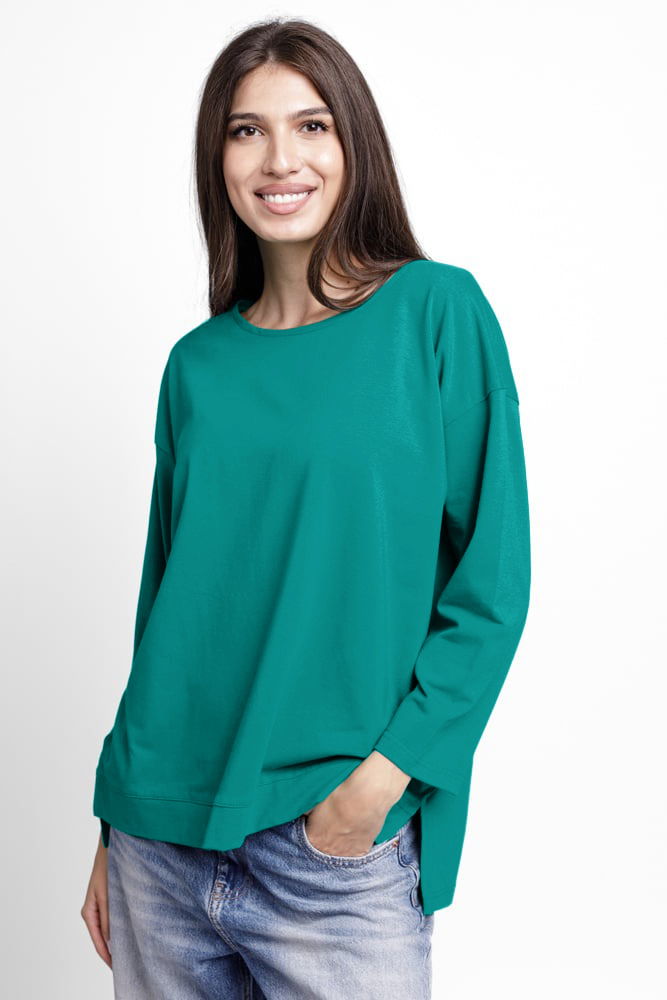 Pierino Bluza larga, dreapta, cu despicaturi laterale, din tricot de bumbac, turcoaz