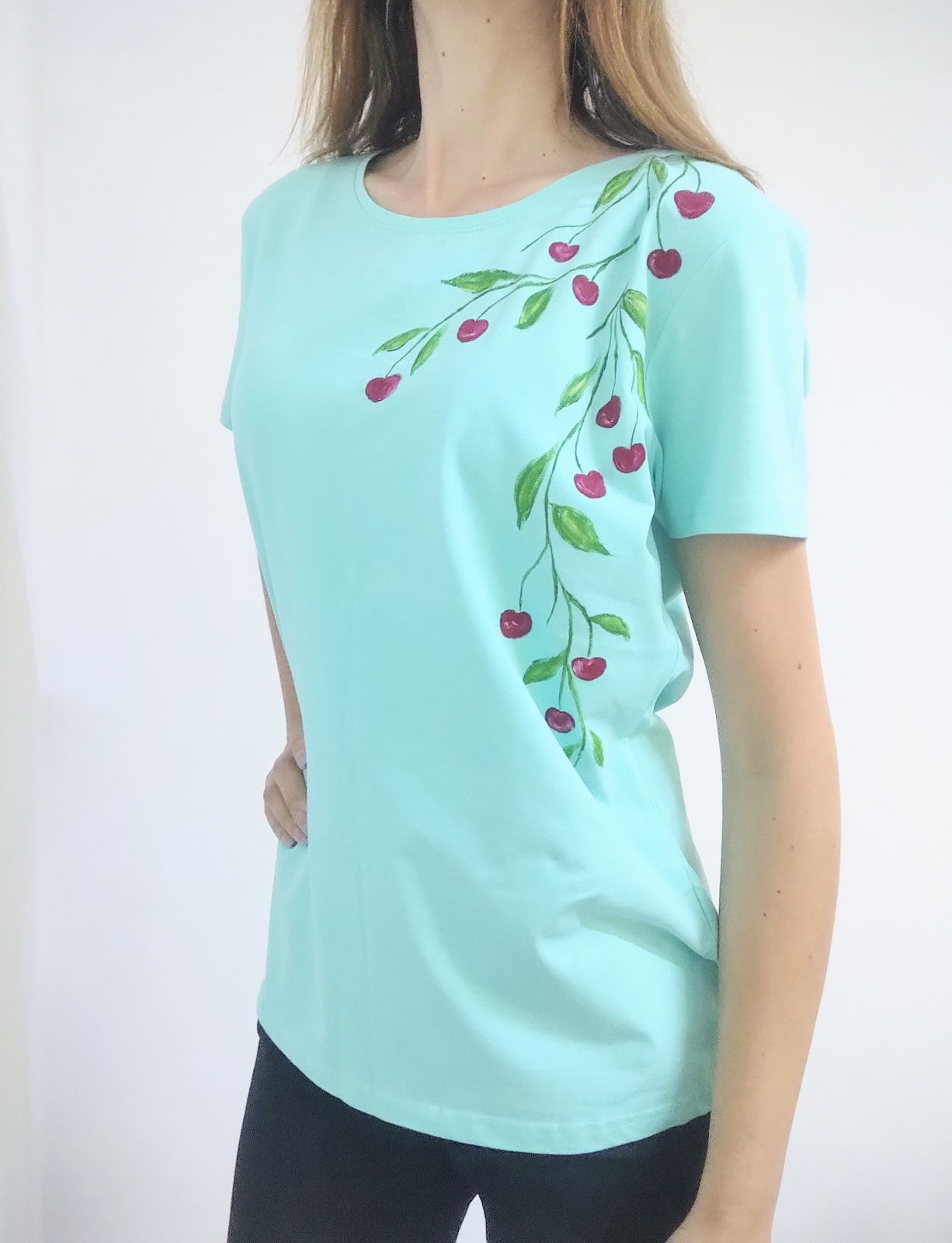 Tricou pictat manual în culori speciale și rezistente. Este lejer si confortabil, cu decolteu rotund la baza gatului.