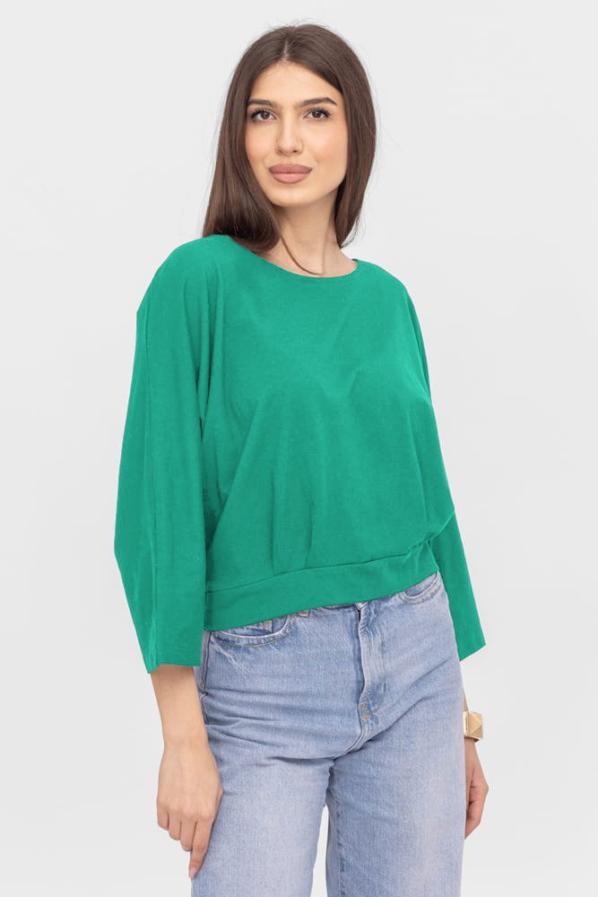 Pierino Bluza cu spate petrecut, si maneca fluture, din tricot de bumbac, turcoaz
